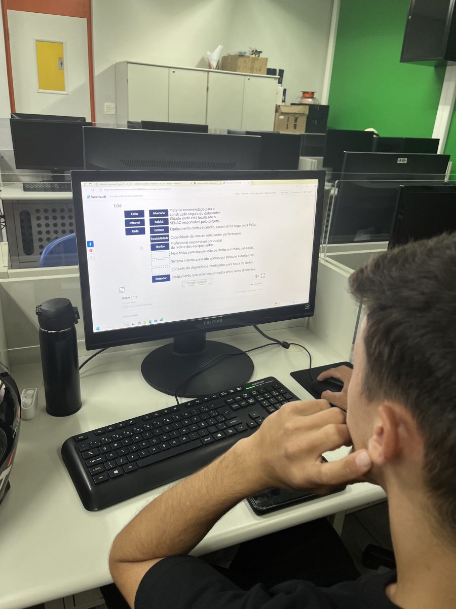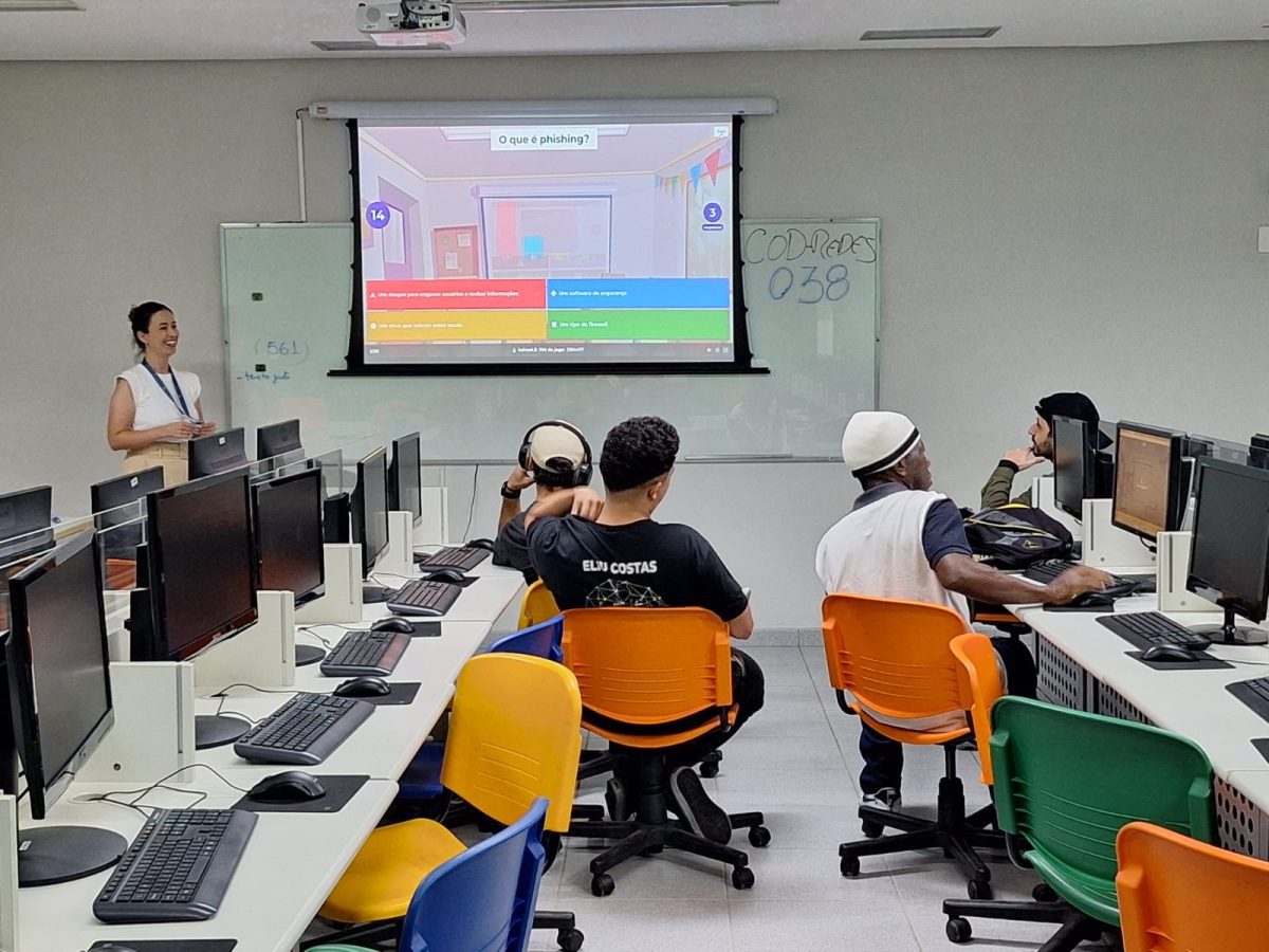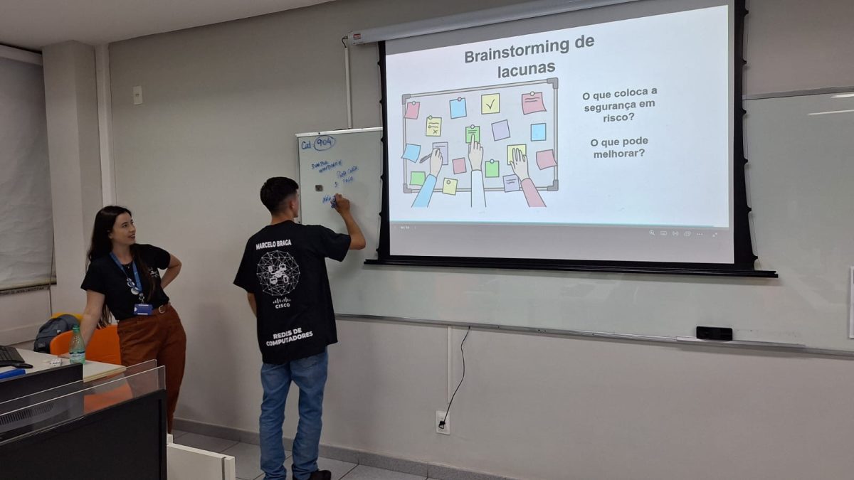 O projeto contou com várias etapas e, em uma das atividades, os alunos conversaram com o profissional de TI, Cleyton. Durante o processo, a turma também participou de aulas práticas, utilizando os equipamentos de rede, e desenvolveu atividades de brainstorming e jogos digitais sobre políticas de segurança.
