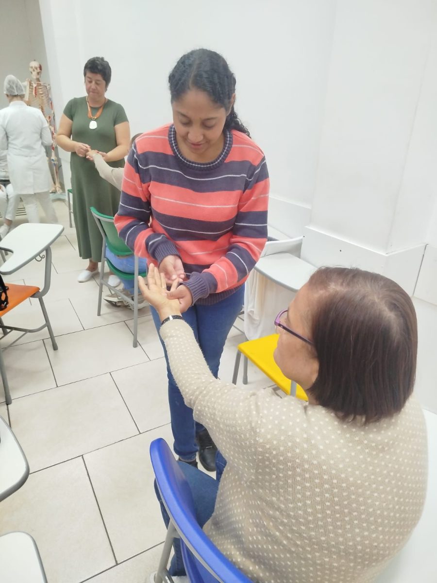 Foi um momento incrível, que proporpocinou aos alunos uma experiência enriquecedora, aprendendo técnicas que promovem relaxamento e bem-estar no cuidado e atenção com a pessoa idosa.