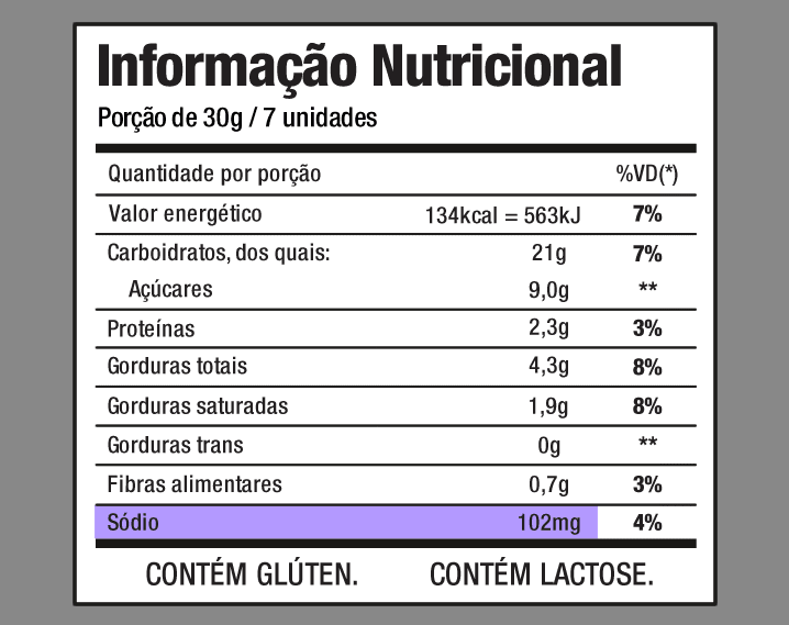 • Fique de olho no sódio! O consumidor também tem que estar atento à quantidade de sódio presente na composição dos produtos. Deve ser consumido com moderação, uma vez que o consumo excessivo pode levar ao aumento da pressão arterial.